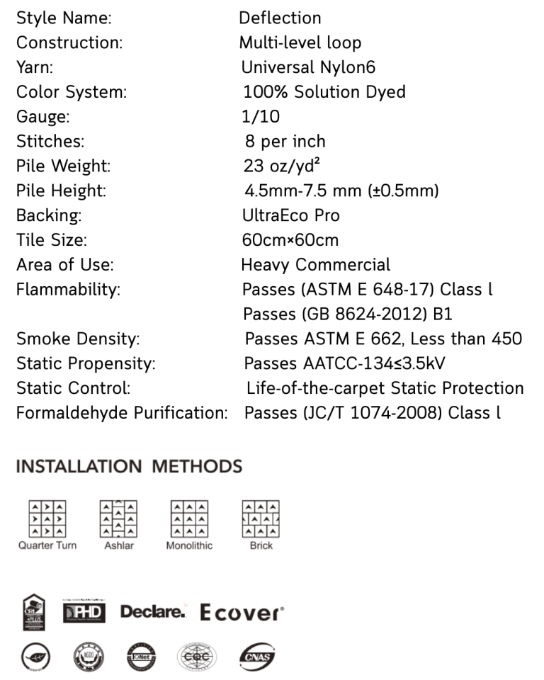 With low-emission materials and recyclable backing, the Deflection Collection meets today’s standards for green building materials.