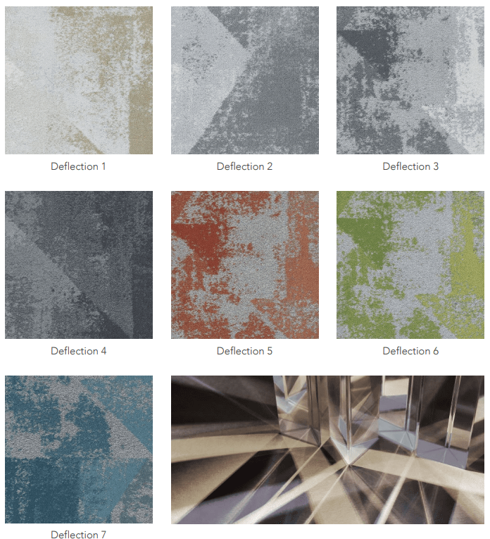 With a modern aesthetic and innovative construction, Deflection carpet tiles are ideal for offices, corporate lobbies, meeting rooms, educational facilities, and hospitality interiors.